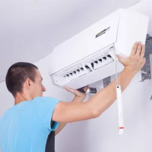 CinchDuring AC service, the technician cleans the dust and debris from the condenser coil and evaporator coil and other key components of the system. In a split AC, the condenser coils are in the outdoor unit.